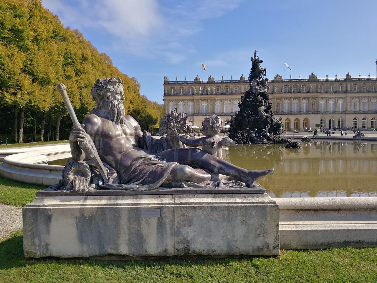 Genau dort will ich mit Doxi hin. Also laufen wir erst einmal 7 Kilometer bis nach Prien und besteigen dort eines der Ausflugsschiffe, das uns in rund zehn Minuten zur Herreninsel bringt. Dort schauen wir uns das berühmte Schloss an, das Versailles nachempfunden ist, und laufen einmal komplett um die zu zwei Dritteln bewaldete Insel.