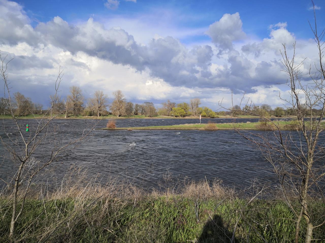 Auf der anderen Seite des Flusses liegt in einiger Entfernung die Stadt Zerbst/Anhalt.