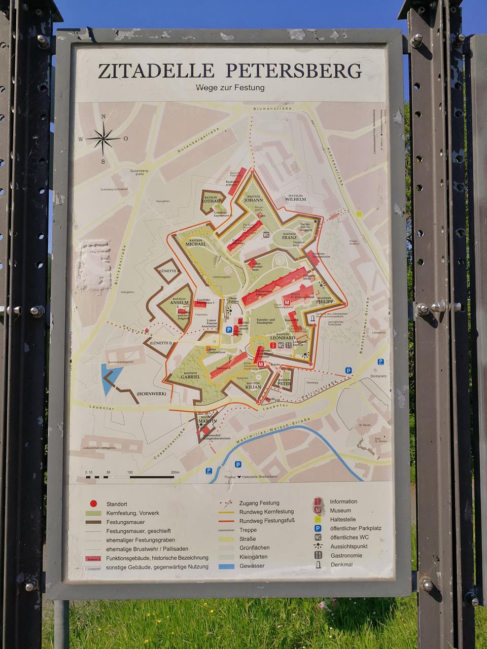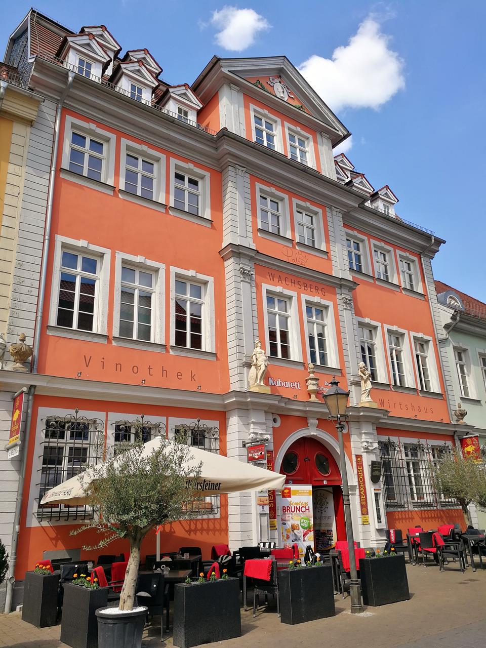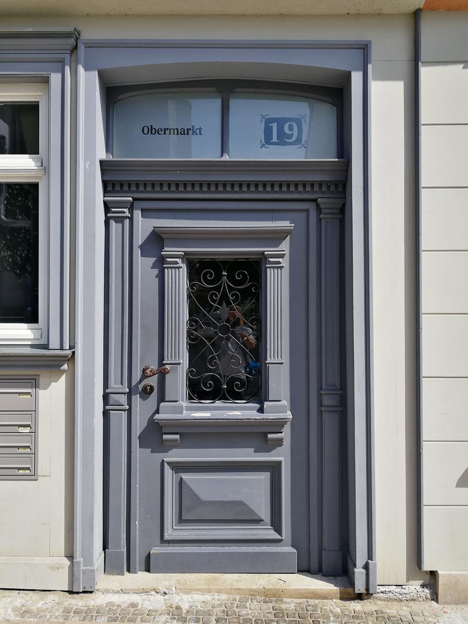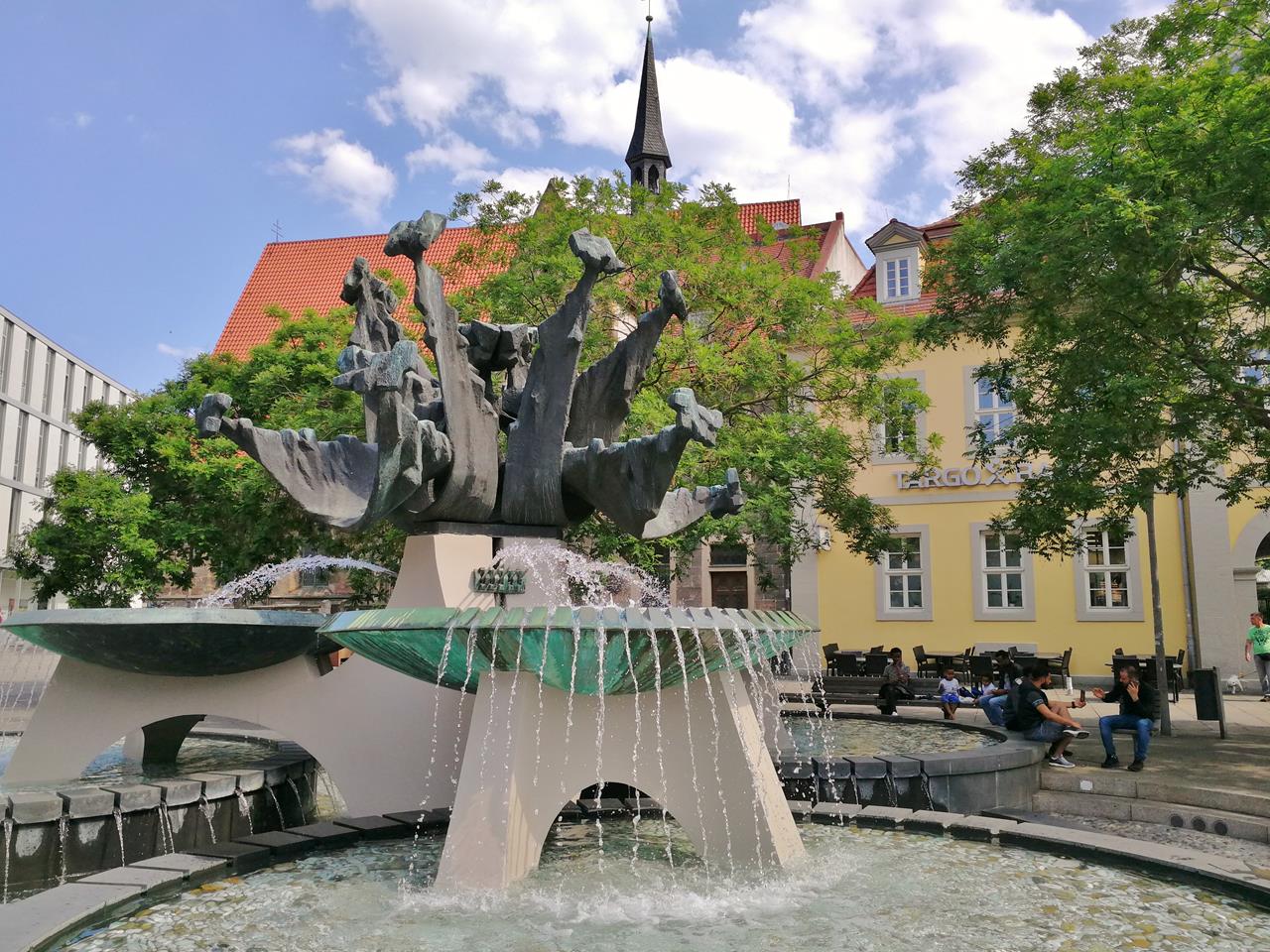 Am Vormittag drehe ich mit Doxi bei prächtigem Wetter eine große Runde durch die Stadt. Wir laufen zunächst zum Schloss und von dort mit prächtigem Blick auf die Stadt und die sogenannte „Wasserkunst“ hinunter in die Altstadt zum Markt mit dem Alten Rathaus.