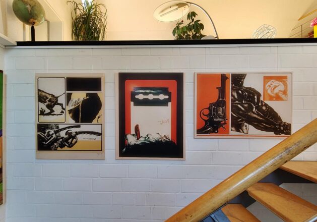Manchmal mag ich Kunst mit starken Botschaften. So, wie die Serien von Peter Sorge (1937-2000) vom Ende der 1960er und den 1970er Jahren. Links „Auf dem Markt wird wieder scharf geschossen“, Mitte „Gute Besserung für Andy“ und rechts „Wege zu Kraft und Schönheit (Black Power)“ seinerzeit alle erschienen als limitierte, handsignierte Druck-Auflage.