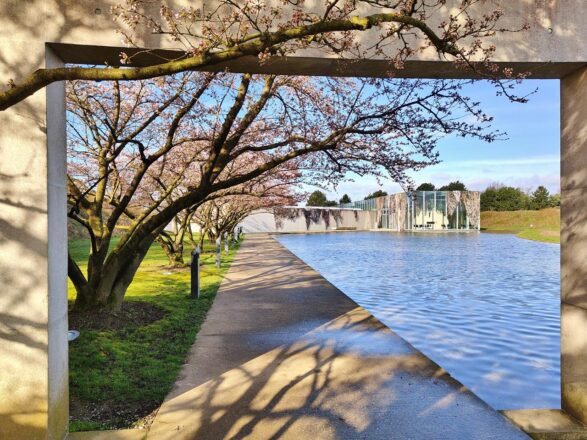 Bei uns im Rheinland startet gerade die Kirschblüte. Heute Vormittag habe ich die Langen Foundation besucht, um zu schauen, wie weit die Blüte der Japanischen Zierkirschen dort bereits gediehen ist. Die Blüten sind tatsächlich alle da, einige haben sich auch bereits geöffnet, aber die ganz große Blüte startet wohl erst in den kommenden Tagen. Trotzdem haben sich bereits jetzt einige sehr schöne Fotomotive ergeben, finde ich.