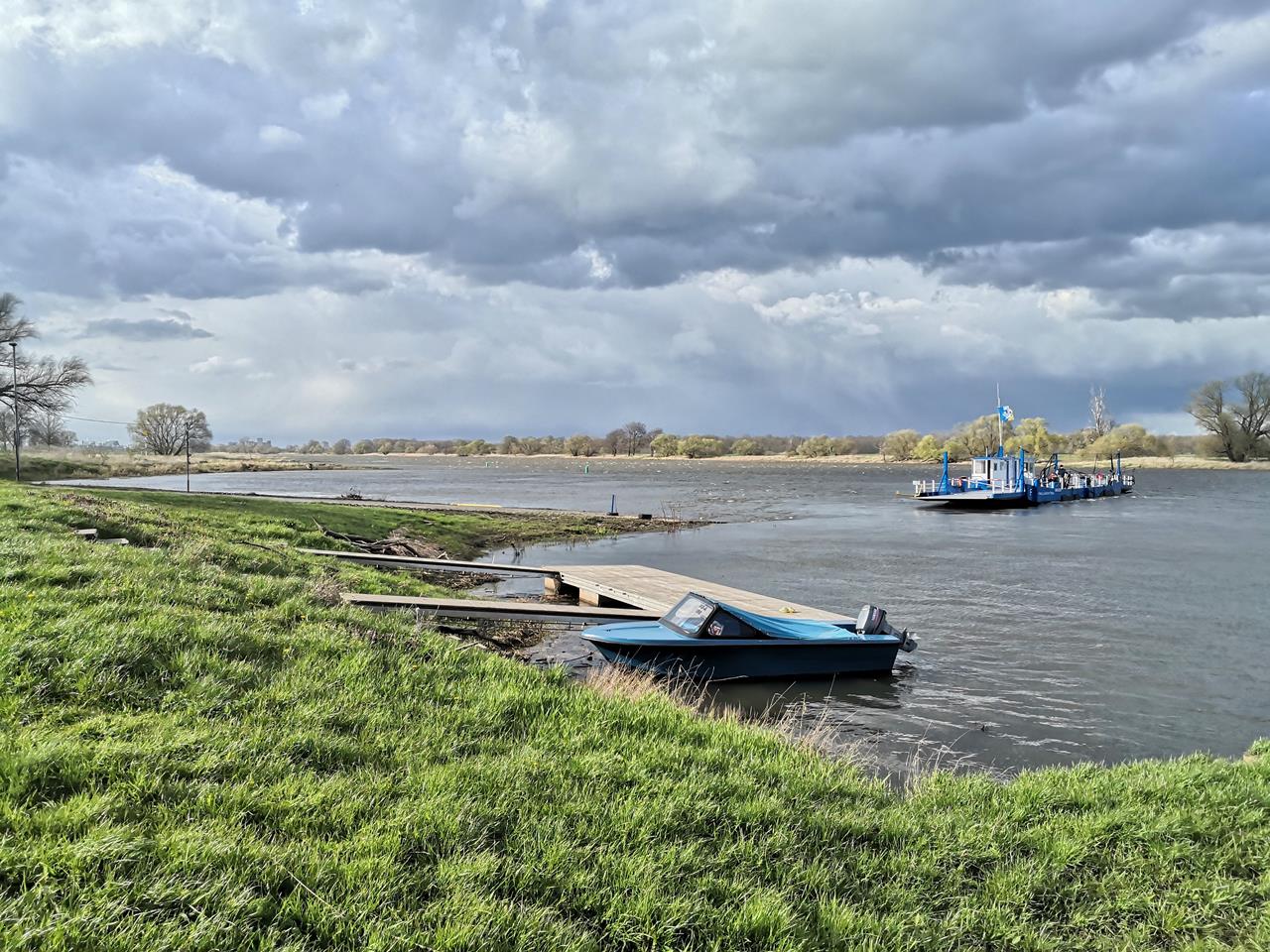 Wir stehen mit dem Wohnmobil mitten in der Natur an der Elbe, keine zweihundert Meter von der Elbfähre „Saalhorn“ entfernt. Etwa einen Kilometer weiter mündet die Saale in die Elbe.Die Fähre ist eine unmotorisierte Gierseilfähre und wird nur von der Strömung des Flusses angetrieben. Dazu stellt sie der Fährmann mal in die eine, mal in die andere Richtung diagonal zur Strömung.
