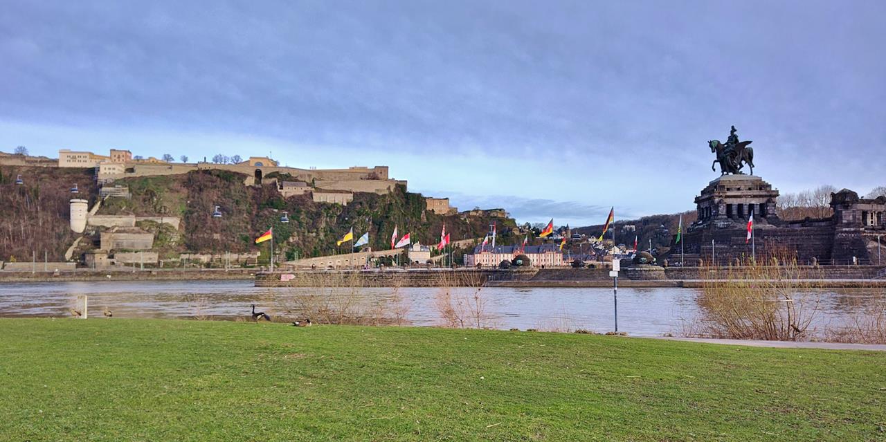 einzigartigen Stellplatz direkt gegenüber dem Deutschen Eck auf der gegenüberliegenden Seite der Mosel.