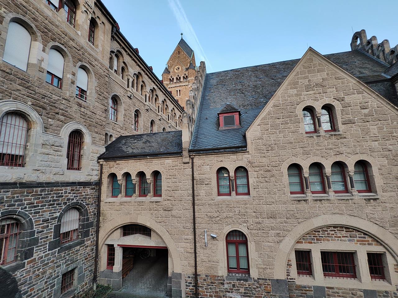 Blick von der Balduinbrücke zur Alten Burg (rechts)