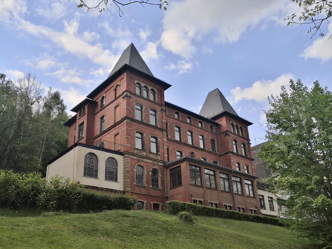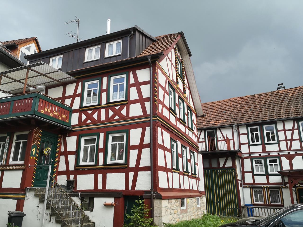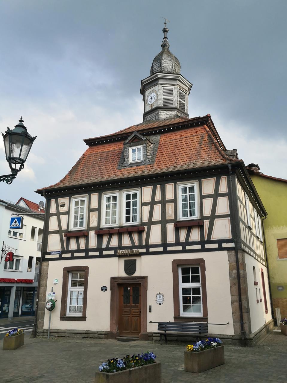 Mit Doxi schaue ich mir insbesondere das historische Zentrum der Stadt zwischen der Salz und dem Stolzenberg an. Am Berg befindet sich das Huttenschloss der früheren Herren von Soden, die neogotische Kirche St. Laurentius von 1896, und ganz oben die Ruine der Burg Stolzenberg mit begehbarem Bergfried. Von dort oben hat man einen tollen Blick auf Bad Soden und weiter über das Tal der Salz bis nach Salmünster.