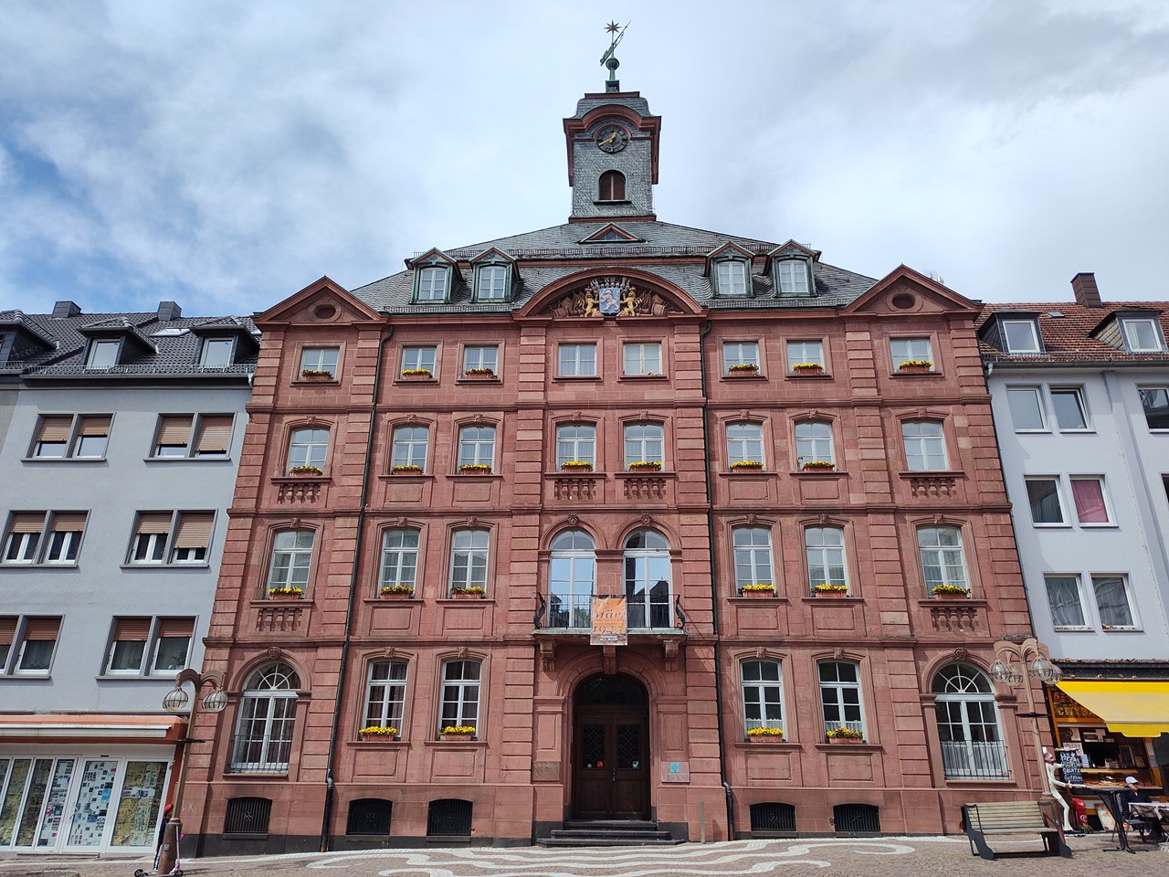 Einem geflügelten Wort zufolge sei Pirmasens – ähnlich wie Rom – auf sieben Hügeln erbaut worden. Tatsächlich zählt man sieben Erhebungen im Bereich der Kernstadt, es geht fast ständig rauf und runter, die Straßen sind vielfach steil.Bei meinem Stadtbummel mit Doxi entdecke ich schnell: Der Stadt geht es aktuell nicht so gut – viel Leerstand und vor sich hin gammelnde Ecken. Die goldenen Zeiten sind definitiv vorbei.