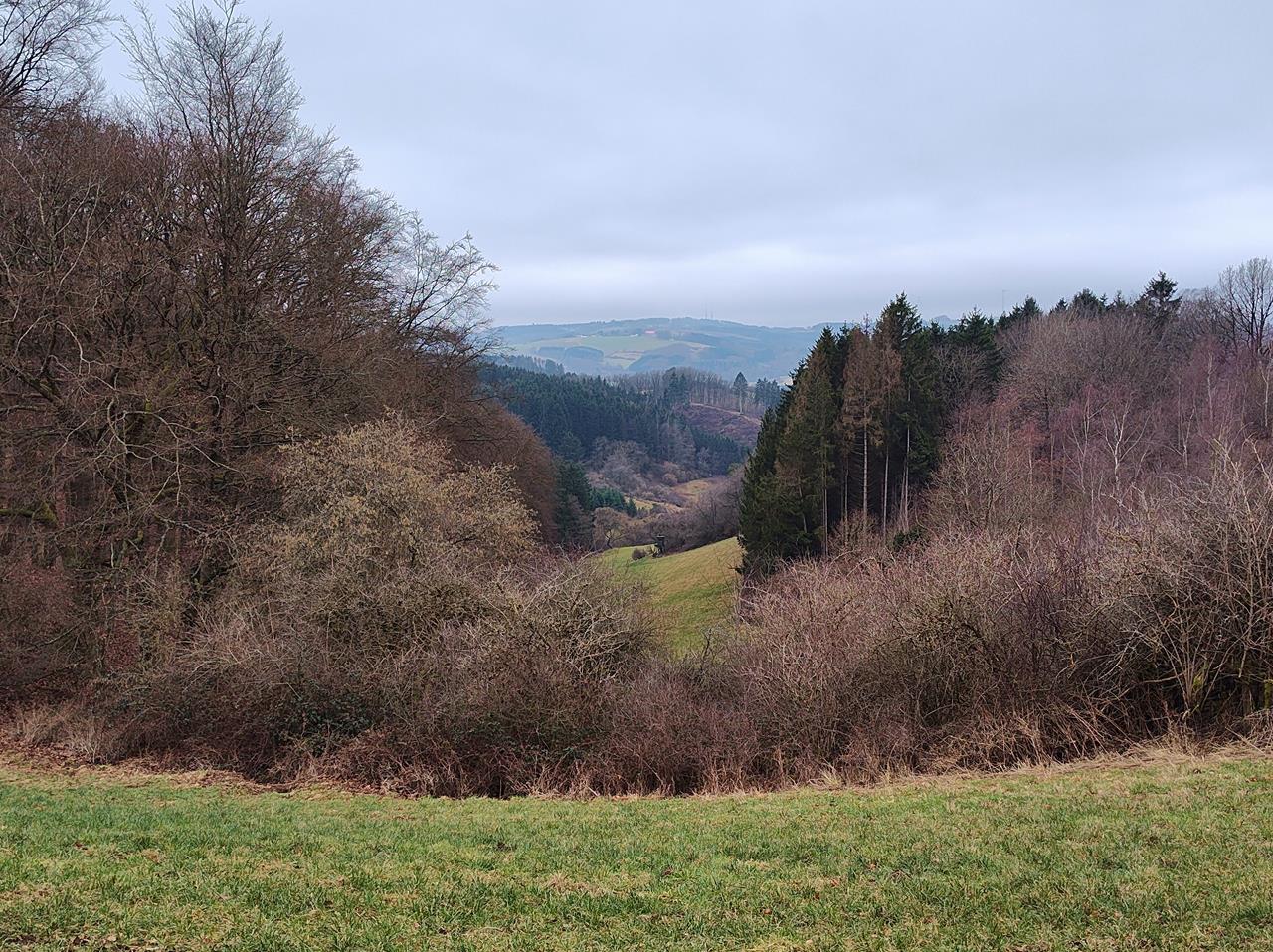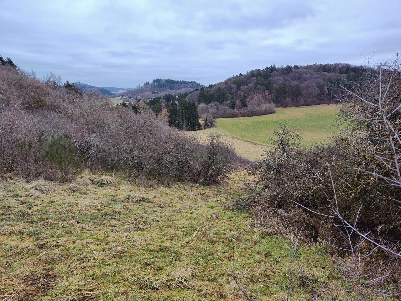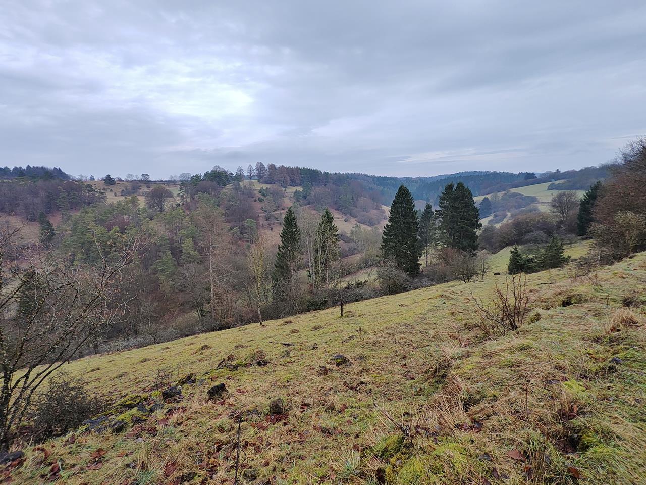 Leider ist es heute ganz grau, sonst wären die Ausblicke in die Landschaft sicher noch eindrucksvoller gewesen. Aber dafür waren wir heute auf weiter Flur allein unterwegs, während das Gebiet sonst von Wanderern stark frequentiert ist.