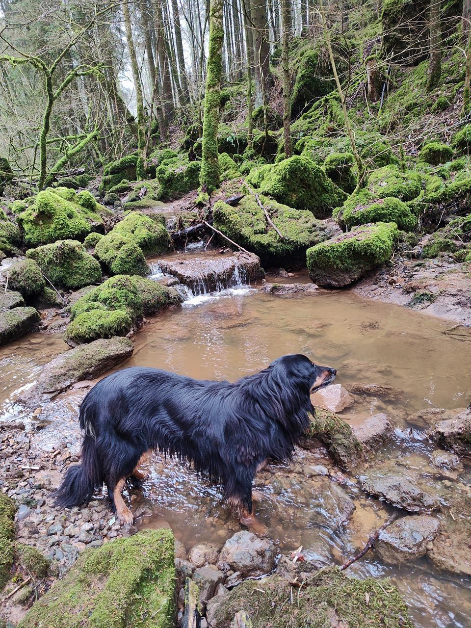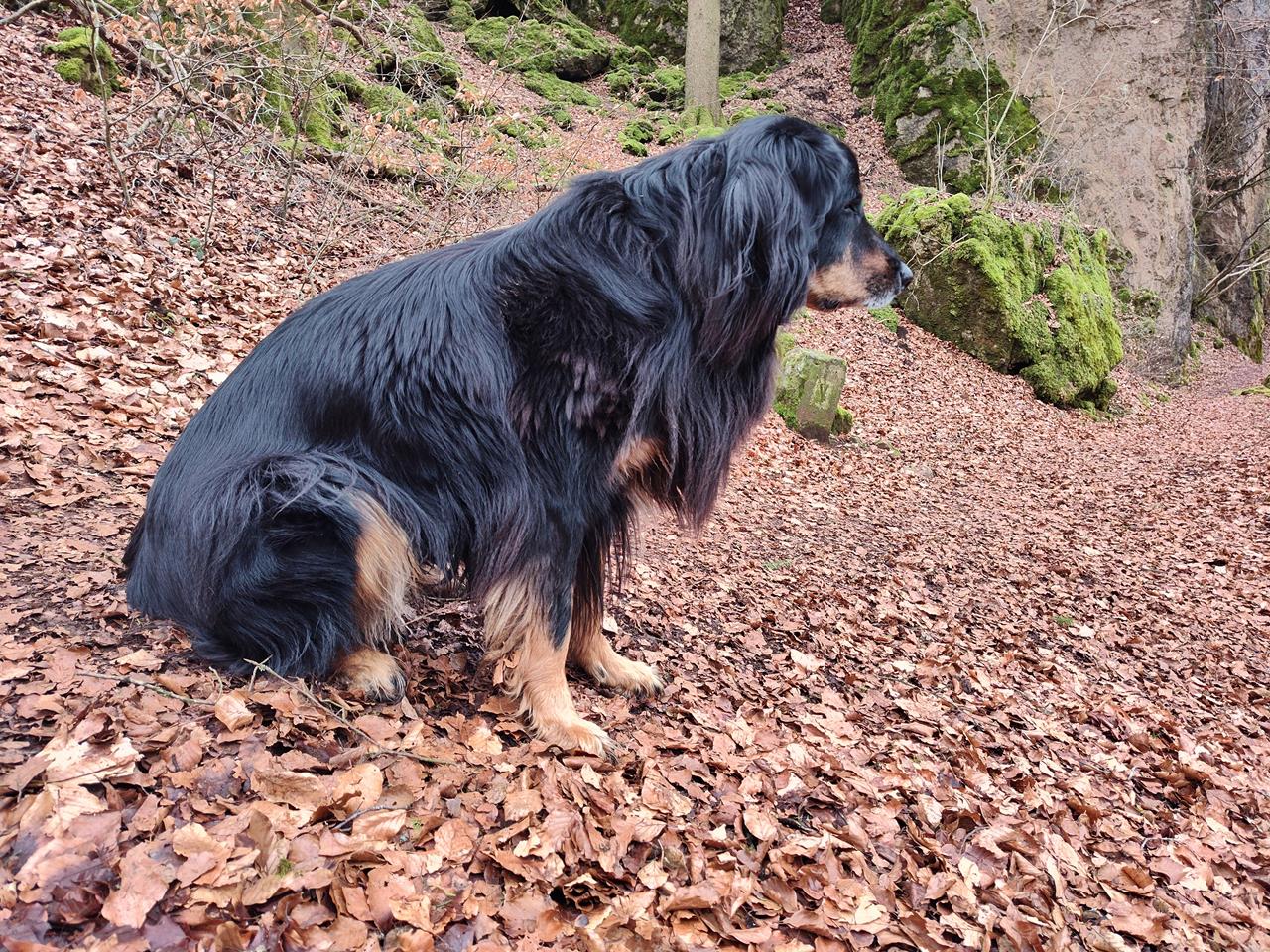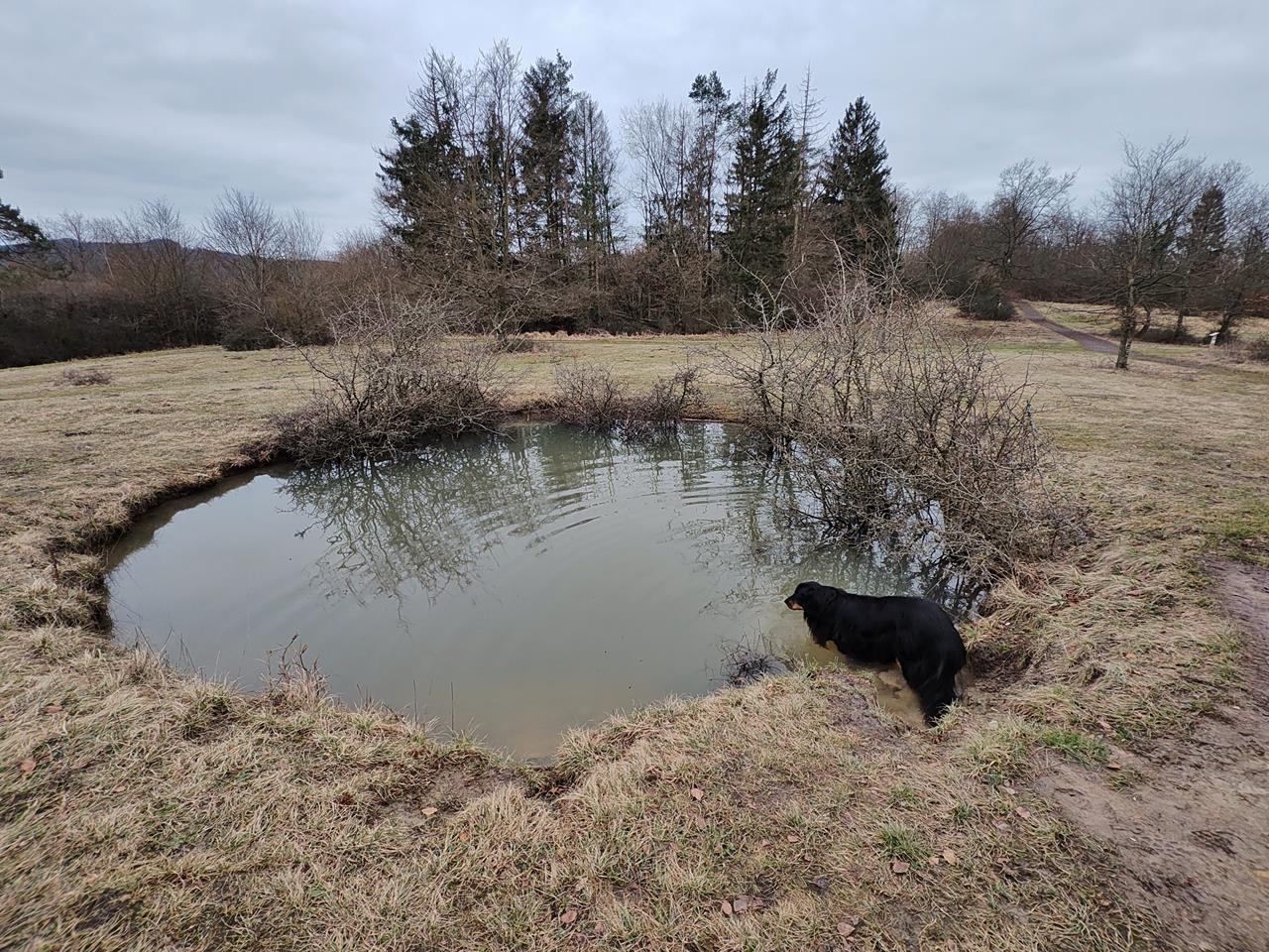 Auf der 14 km langen Wanderung mit Doxi begegnen uns zunächst eine 13-köpfige Wildschwein-Rotte, später Rehe und sogar ein Frettchen bei der Jagd, während in der Ferne immer wieder die schrillen Rufe von Raubvögeln zu hören sind.