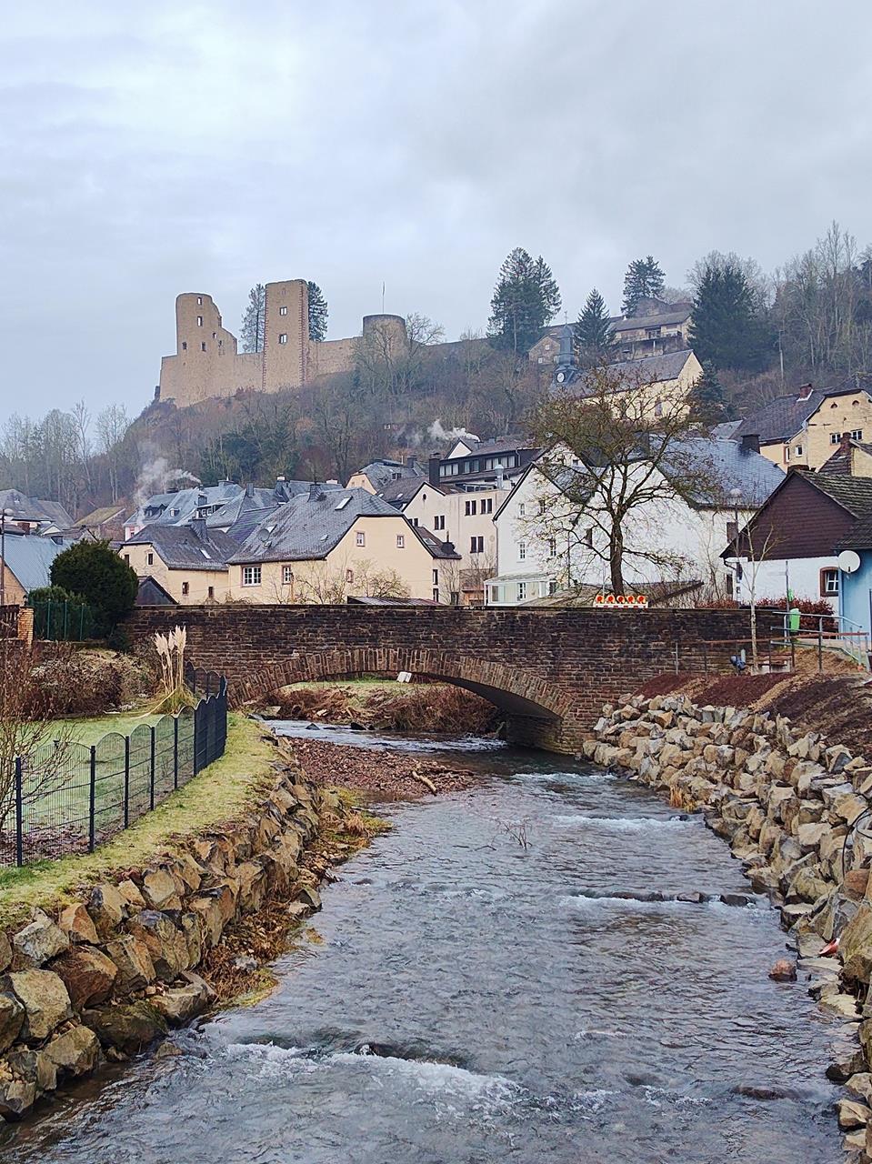 Blick über die Nims zur Burg Schönecken